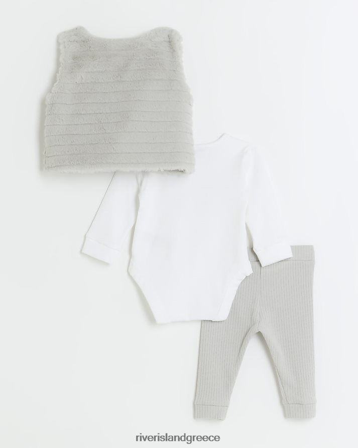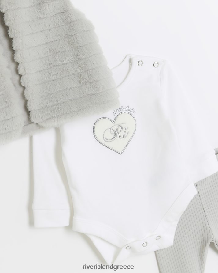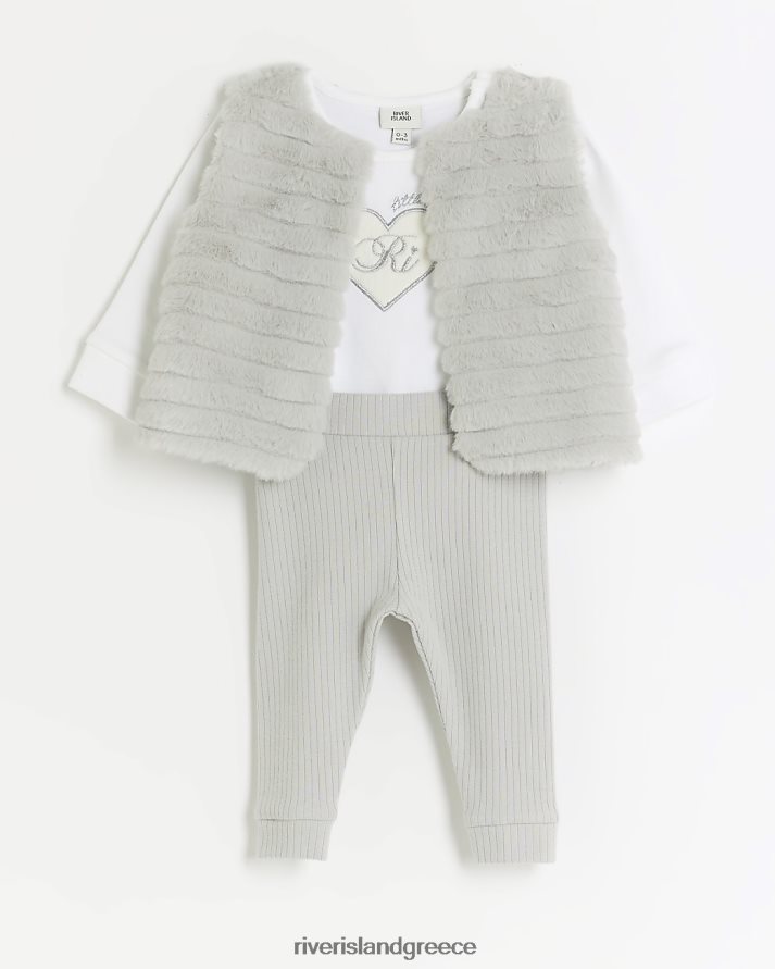 River Island ενδύματα γκρί κορίτσια bg σετ από ψεύτικη γούνα gilet B6N8X3526