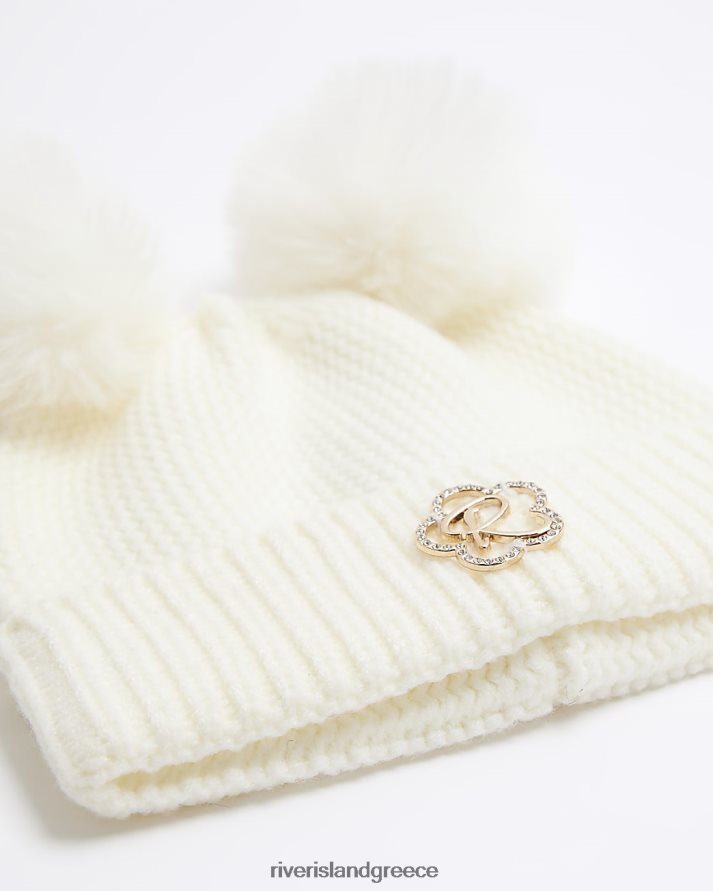 River Island αξεσουάρ κρέμα κορίτσια mg pom pom beanie καπέλο B6N8X3585