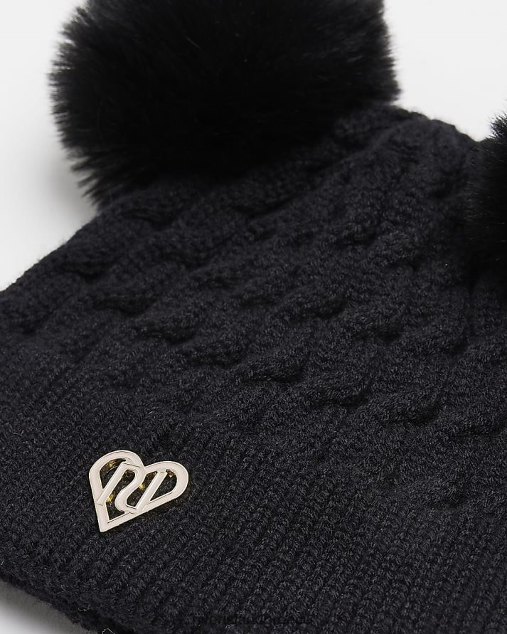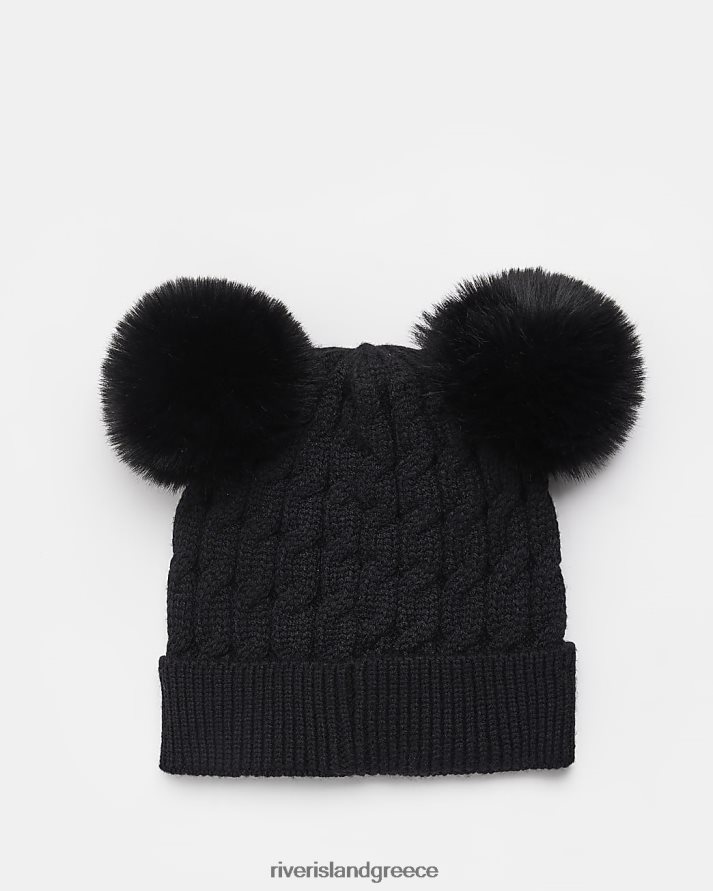 River Island αξεσουάρ μαύρος κορίτσια mg διπλό πομ πομ καπέλο μπανιέ B6N8X3601