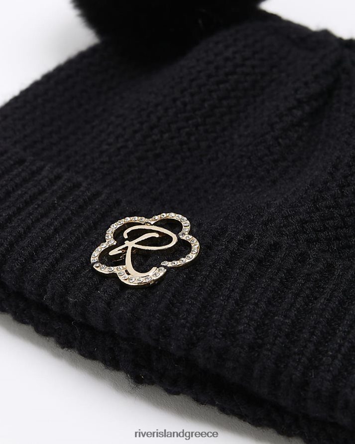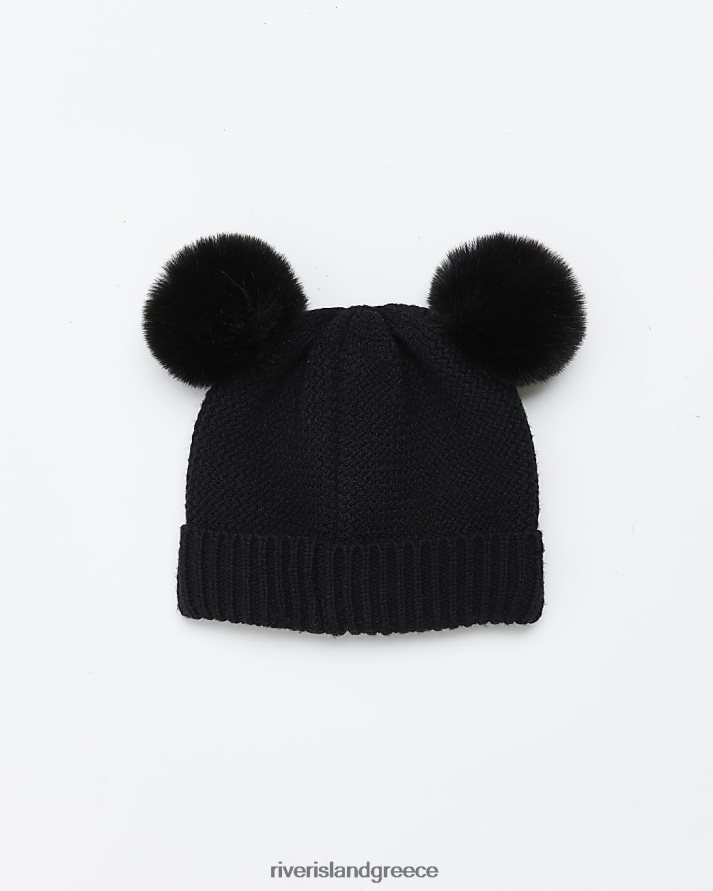 River Island αξεσουάρ μαύρος κορίτσια mg pom pom beanie καπέλο B6N8X3586