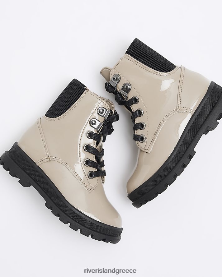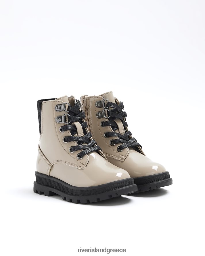 River Island είδη υπόδησης καφέ κορίτσια mg patent μπότες με κορδόνια B6N8X6618