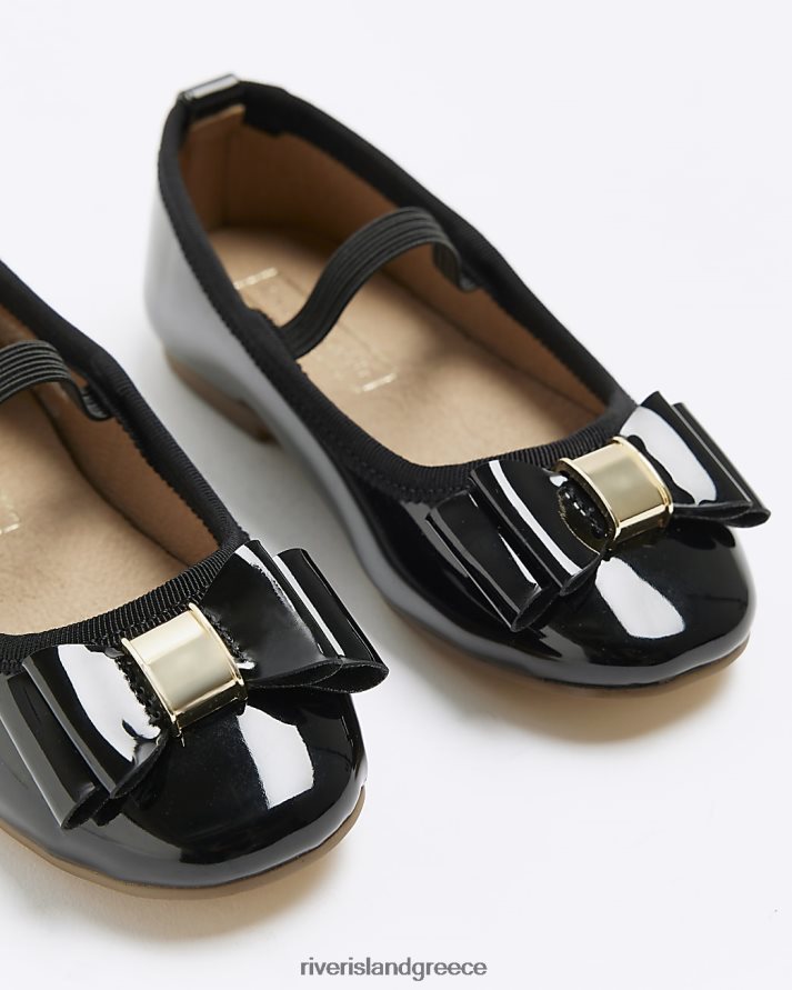 River Island είδη υπόδησης μαύρος κορίτσια mg πατέντα μπαλαρίνας με φιόγκο B6N8X3511