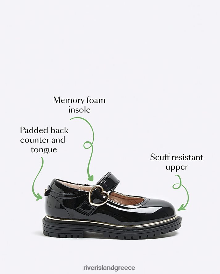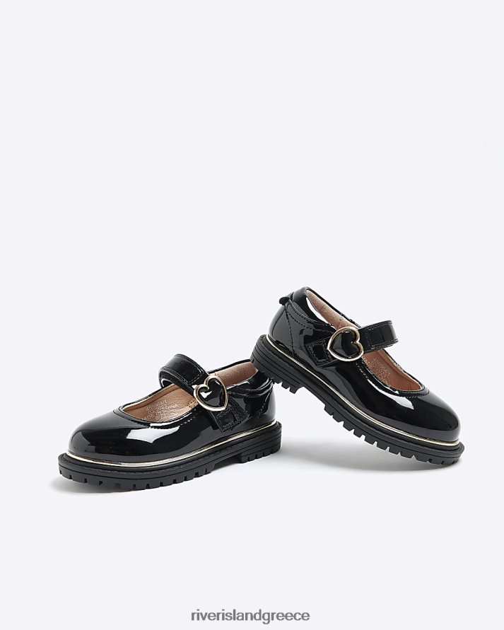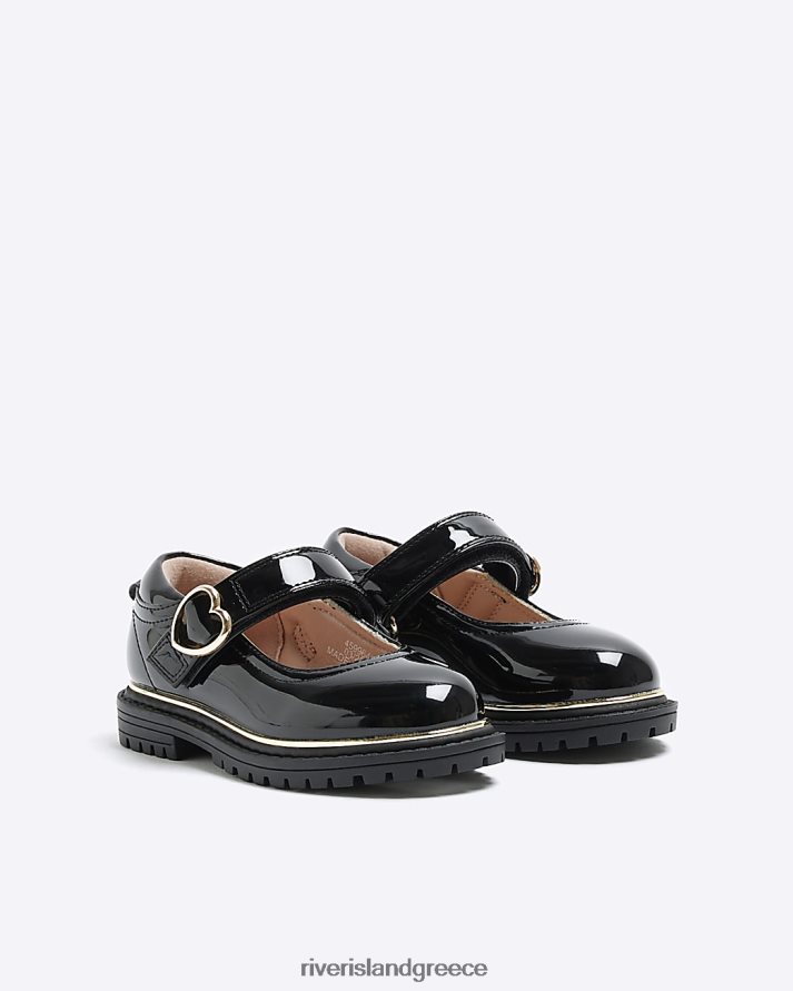 River Island είδη υπόδησης μαύρος κορίτσια mg πόρπη καρδιά mary jane παπούτσια B6N8X3505