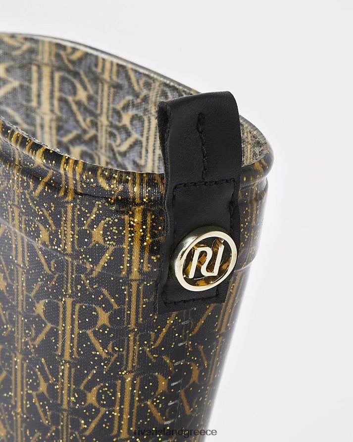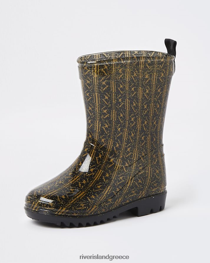 River Island είδη υπόδησης μαύρος κορίτσια mg ri μονόγραμμα μπότες γαλότσες B6N8X3587