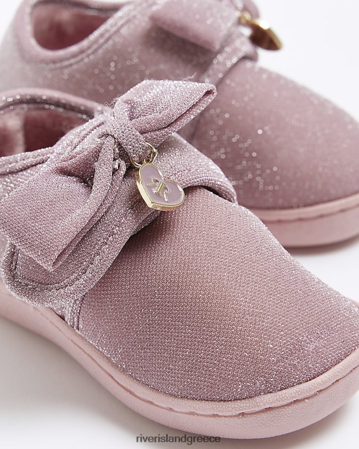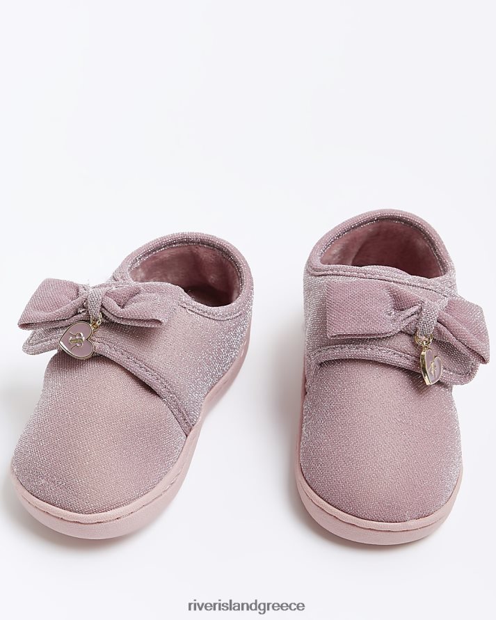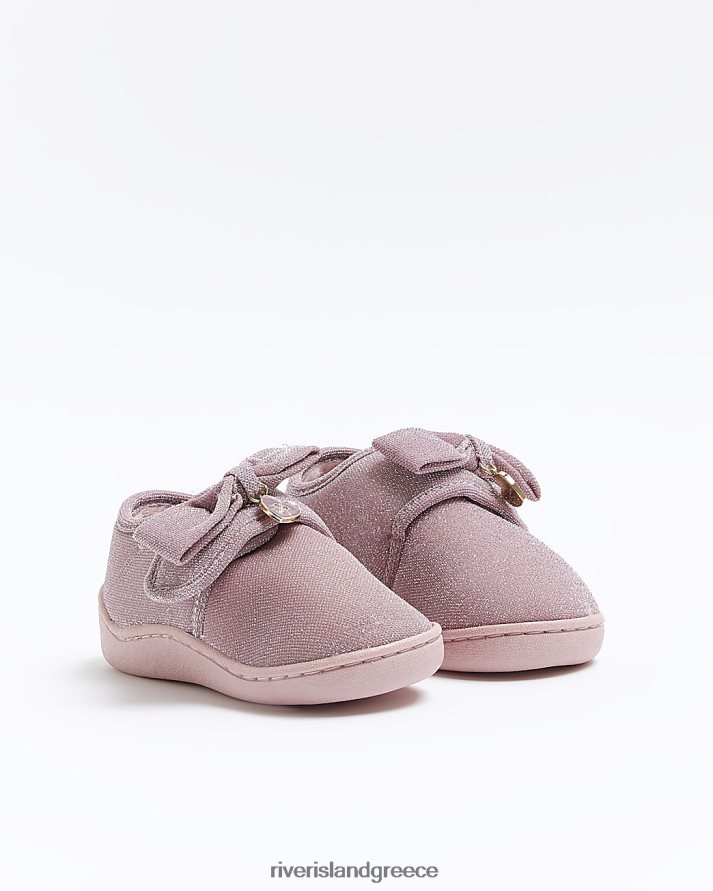 River Island είδη υπόδησης ροζ κορίτσια παντόφλες φιόγκου με shimmer velcro mg B6N8X6734