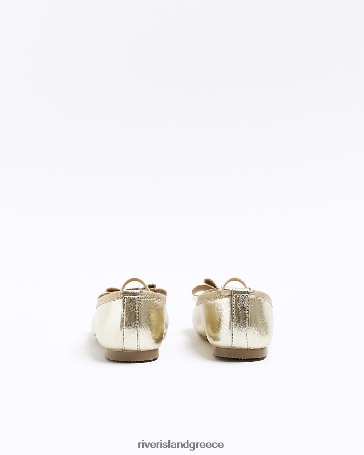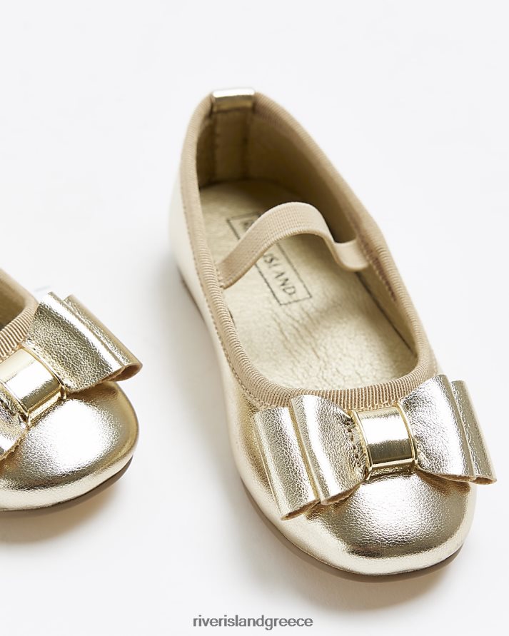 River Island είδη υπόδησης χρυσός κορίτσια mg παπούτσια μπαλαρίνας με λεπτομέρεια φιόγκου B6N8X3512