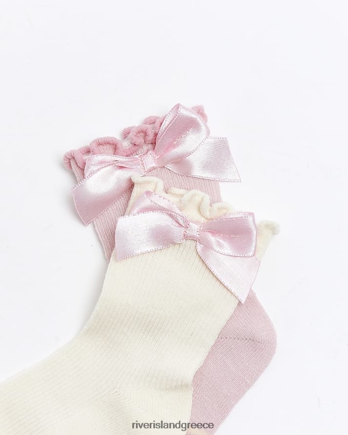 River Island αξεσουάρ άσπρο κορίτσια mg φιόγκο κάλτσα 2 συσκευασία B6N8X6746