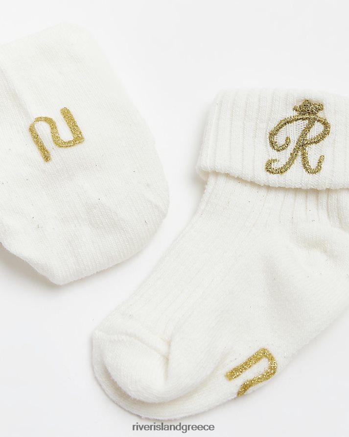 River Island αξεσουάρ κρέμα κορίτσια bb ri κεντημένες κάλτσες 2 pack B6N8X3611