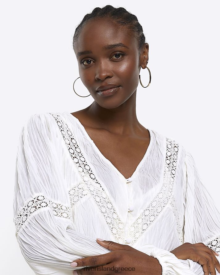 River Island ενδύματα άσπρο γυναίκες λεπτομέρεια δαντέλα smock μίνι φόρεμα B6N8X998