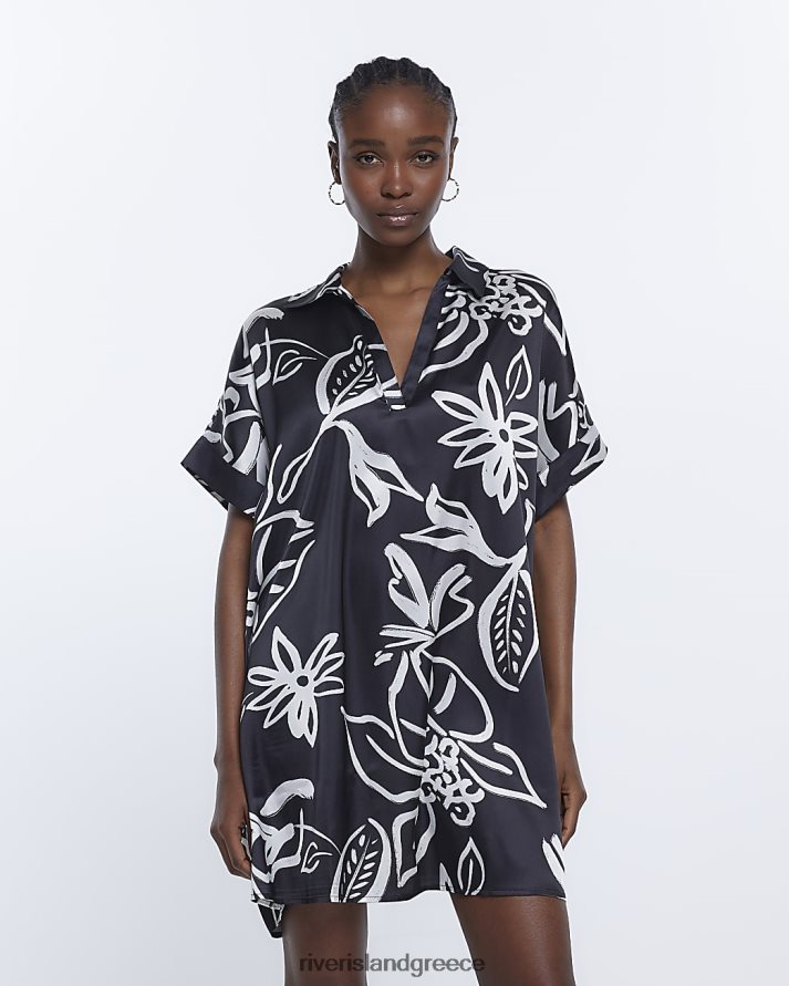 River Island ενδύματα άσπρο γυναίκες Μίνι πουκάμισο φλοράλ κοντομάνικο φόρεμα B6N8X1502