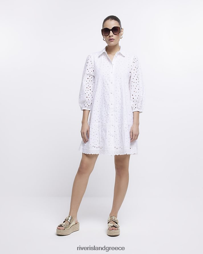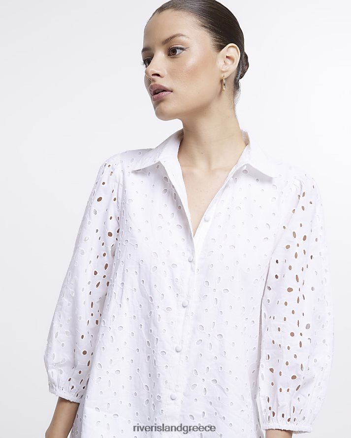 River Island ενδύματα άσπρο γυναίκες Μίνι πουκάμισο broderie B6N8X1758