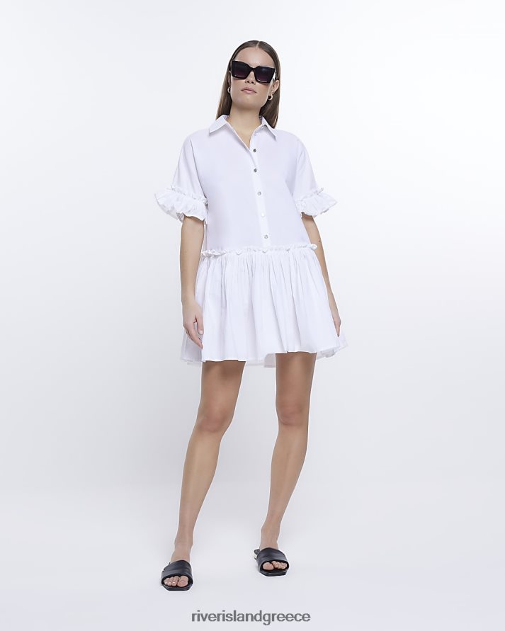 River Island ενδύματα άσπρο γυναίκες frill μίνι πουκάμισο φόρεμα B6N8X4762