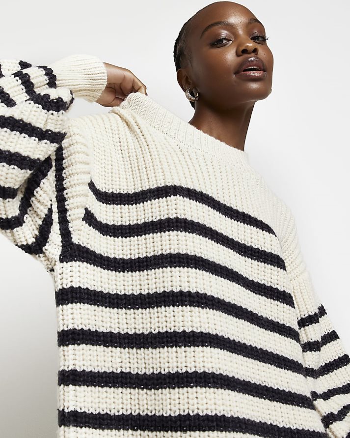 River Island ενδύματα εκρού γυναίκες Μίνι φόρεμα με ριγέ πλεκτό jumper B6N8X4838