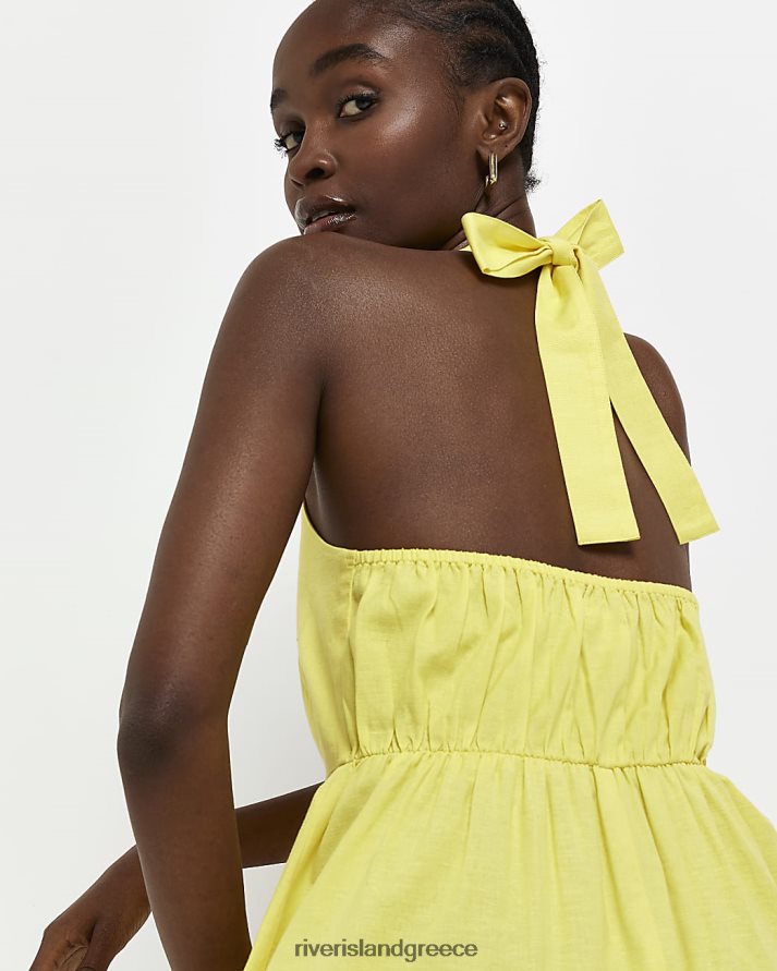 River Island ενδύματα κίτρινος γυναίκες Μίνι φόρεμα με λαιμόκοψη λινό B6N8X1492