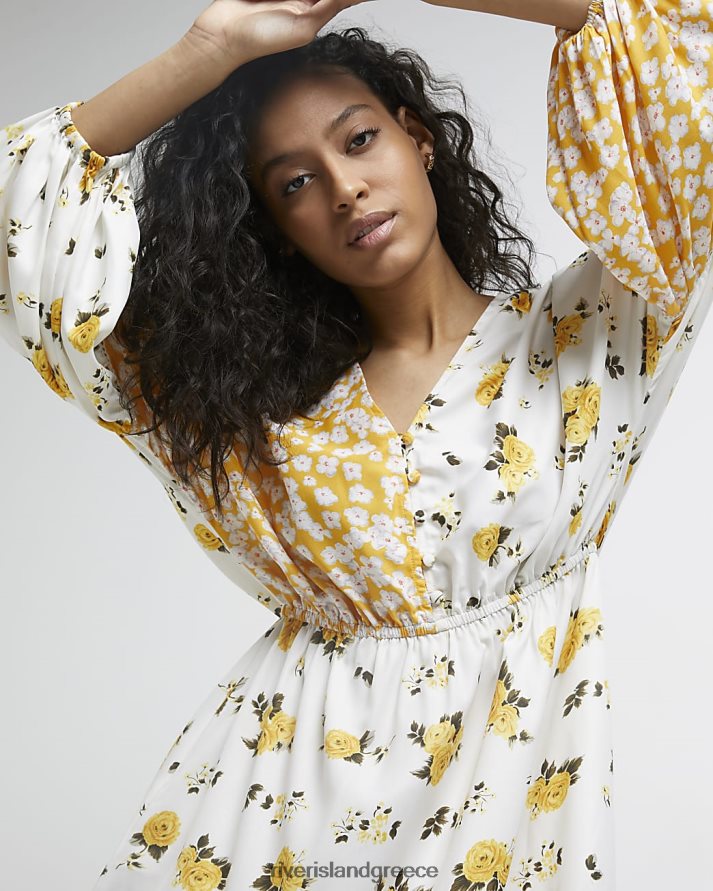 River Island ενδύματα κίτρινος γυναίκες floral smock μίνι φόρεμα B6N8X2181