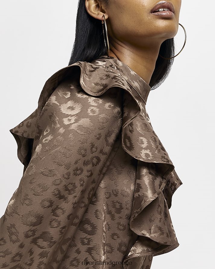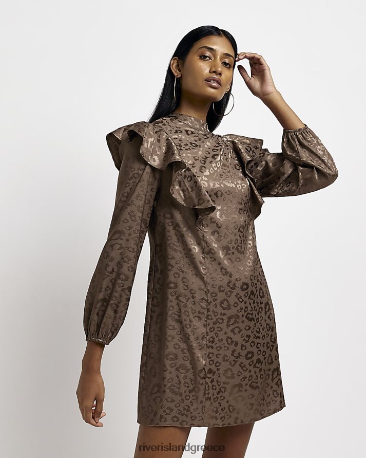 River Island ενδύματα καφέ γυναίκες Μίνι φόρεμα ζακάρ frill shift B6N8X1999