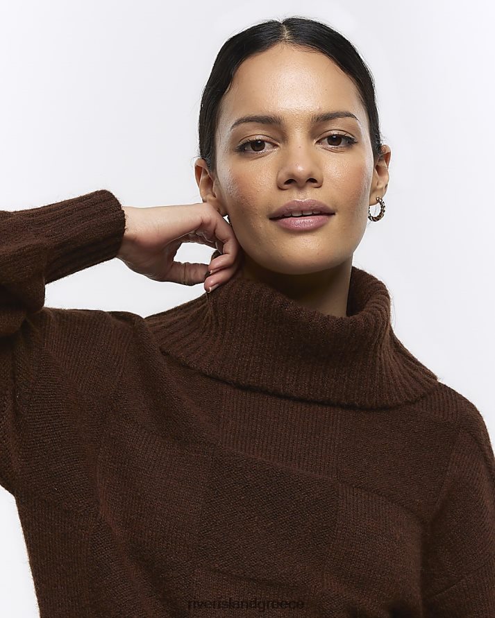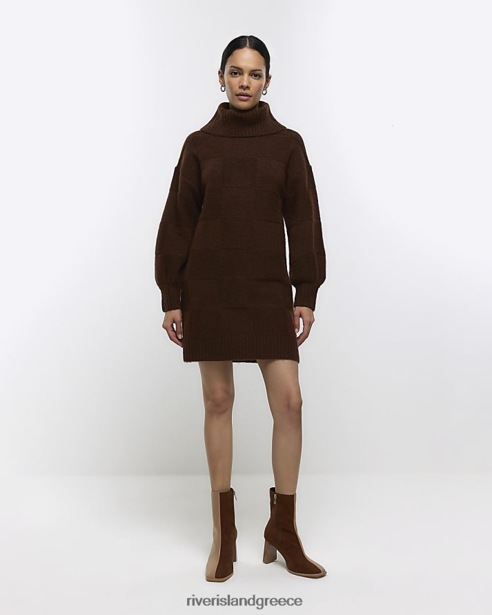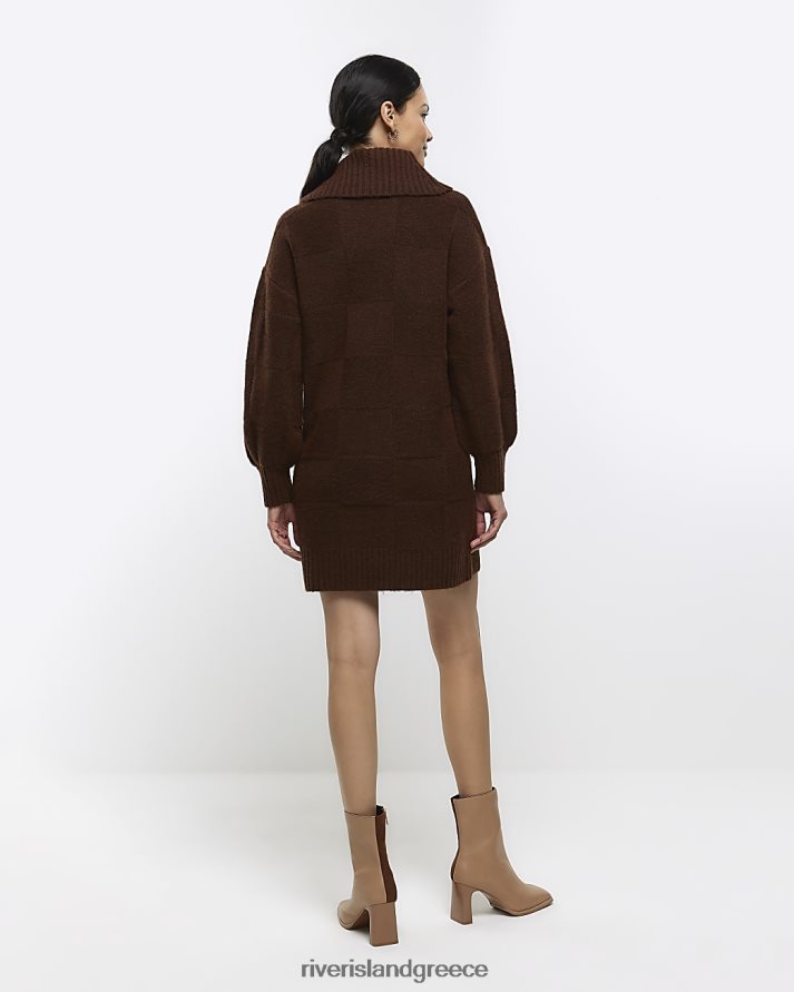 River Island ενδύματα καφέ γυναίκες Μίνι φόρεμα με ανάγλυφο λαιμόκοψη B6N8X222
