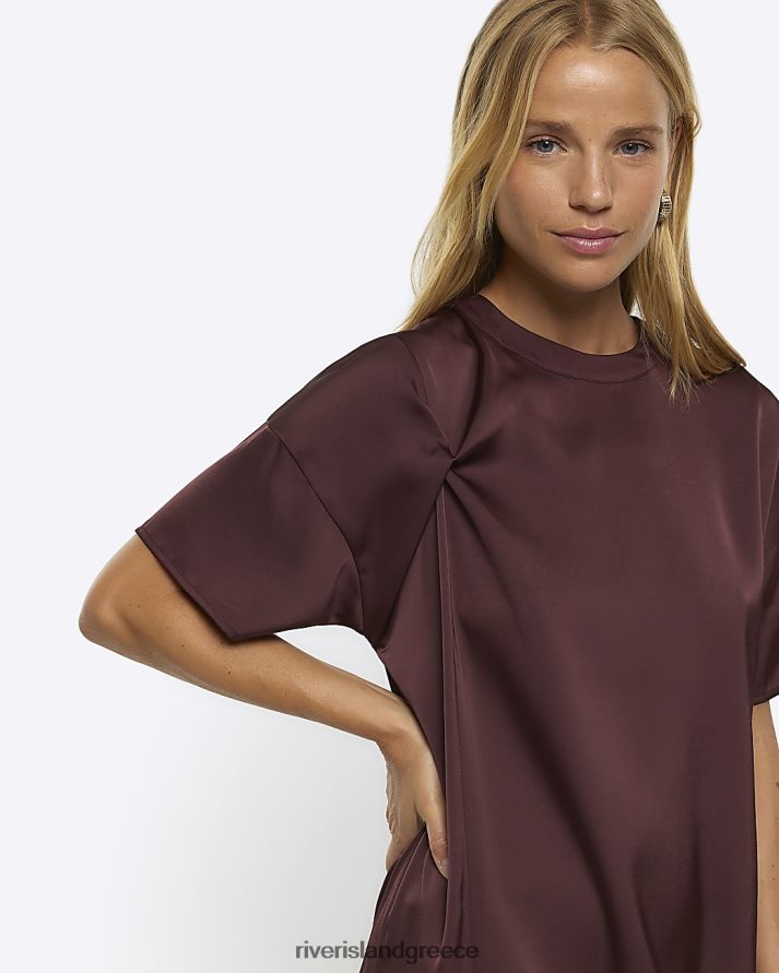 River Island ενδύματα καφέ γυναίκες Μίνι φόρεμα με λεπτομέρεια σατέν κόμπο B6N8X4497