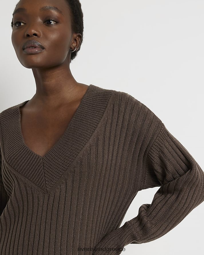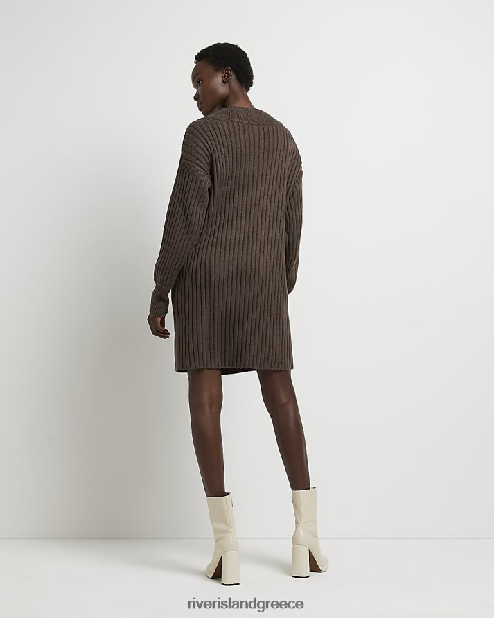 River Island ενδύματα καφέ γυναίκες Μίνι φόρεμα με μακριά μανίκια B6N8X794