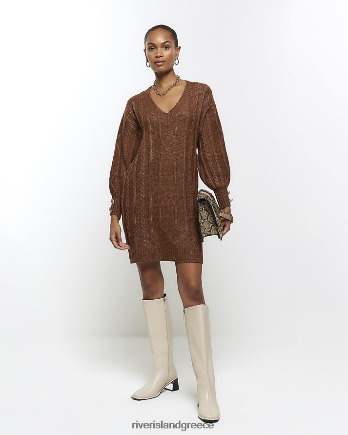 River Island ενδύματα καφέ γυναίκες Μίνι φόρεμα με πλεκτό καλώδιο B6N8X550