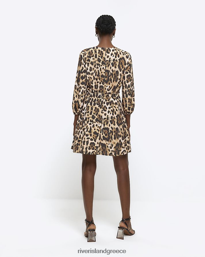 River Island ενδύματα καφέ γυναίκες Μίνι φόρεμα με animal print δέσιμο στη μέση B6N8X1096