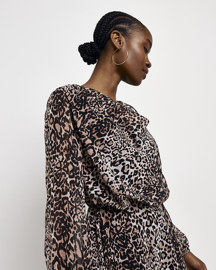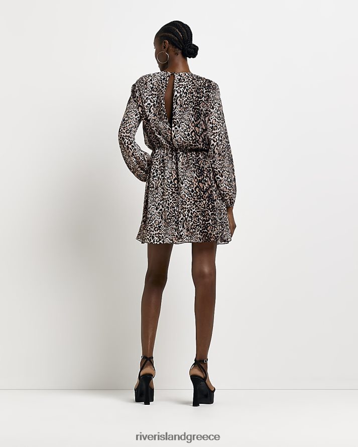 River Island ενδύματα καφέ γυναίκες Μίνι φόρεμα με animal print λαιμόκοψη B6N8X2092