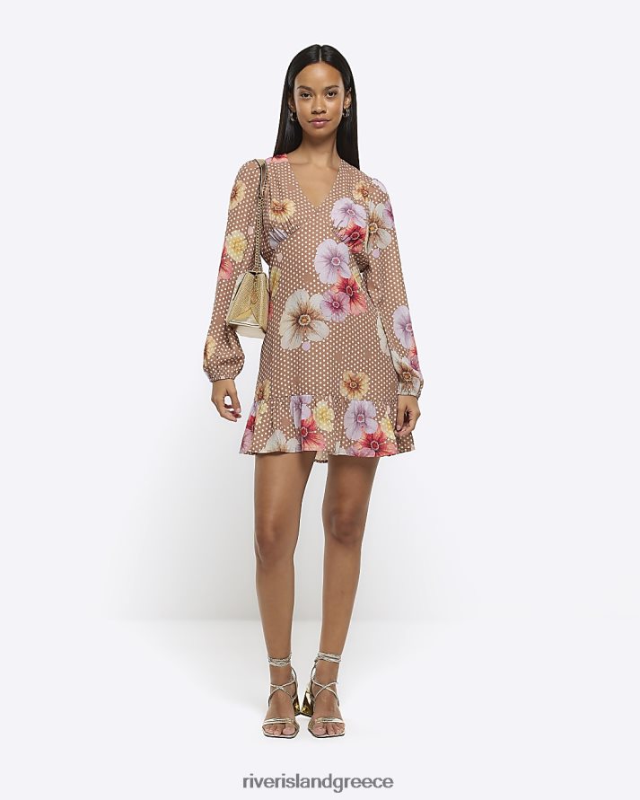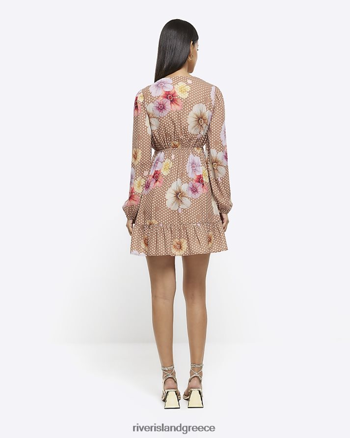 River Island ενδύματα καφέ γυναίκες Μίνι φόρεμα με floral print B6N8X4499