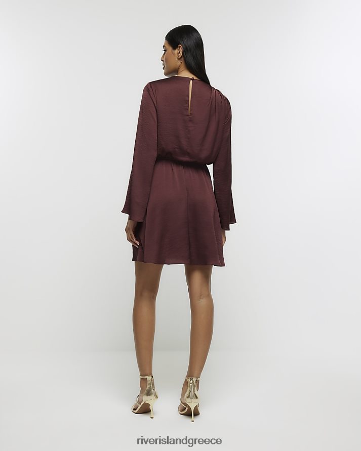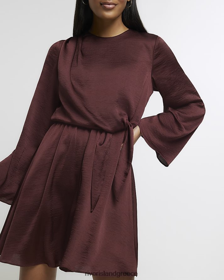 River Island ενδύματα καφέ γυναίκες Μίνι φόρεμα μπροστινό κόμπο B6N8X836