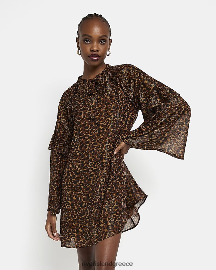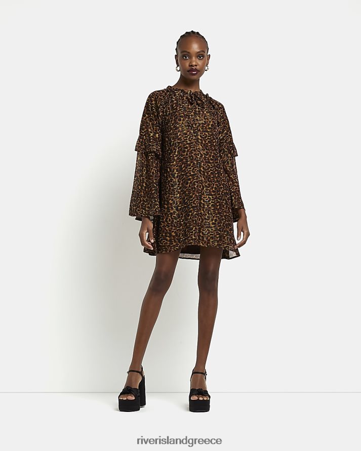 River Island ενδύματα καφέ γυναίκες animal print smock μίνι φόρεμα B6N8X1753