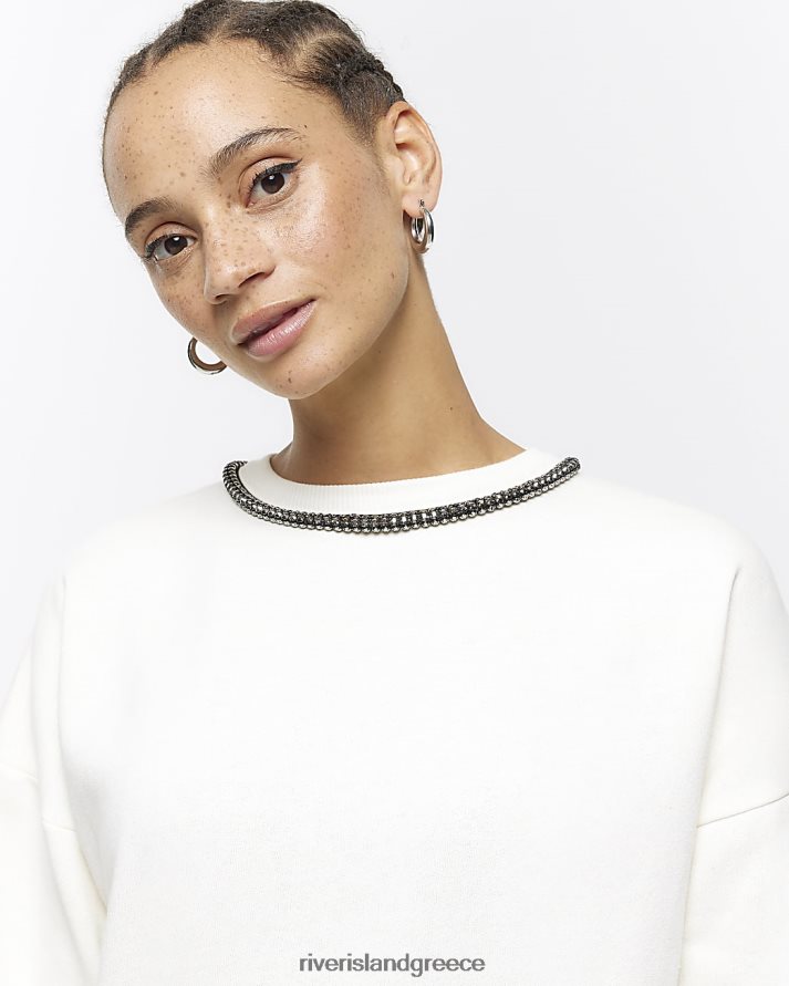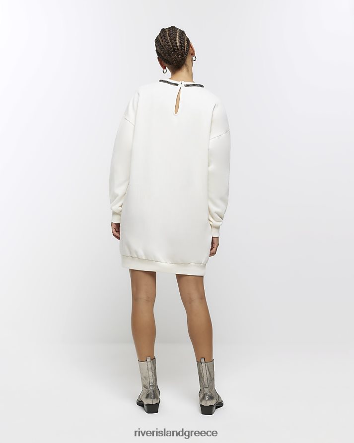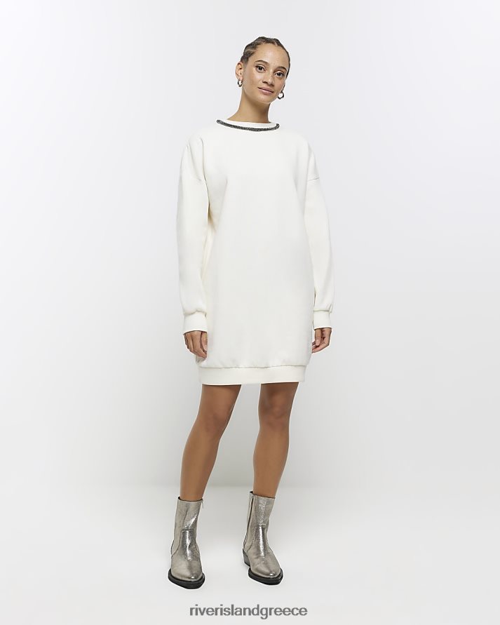 River Island ενδύματα κρέμα γυναίκες Μίνι φόρεμα φούτερ diamante B6N8X377