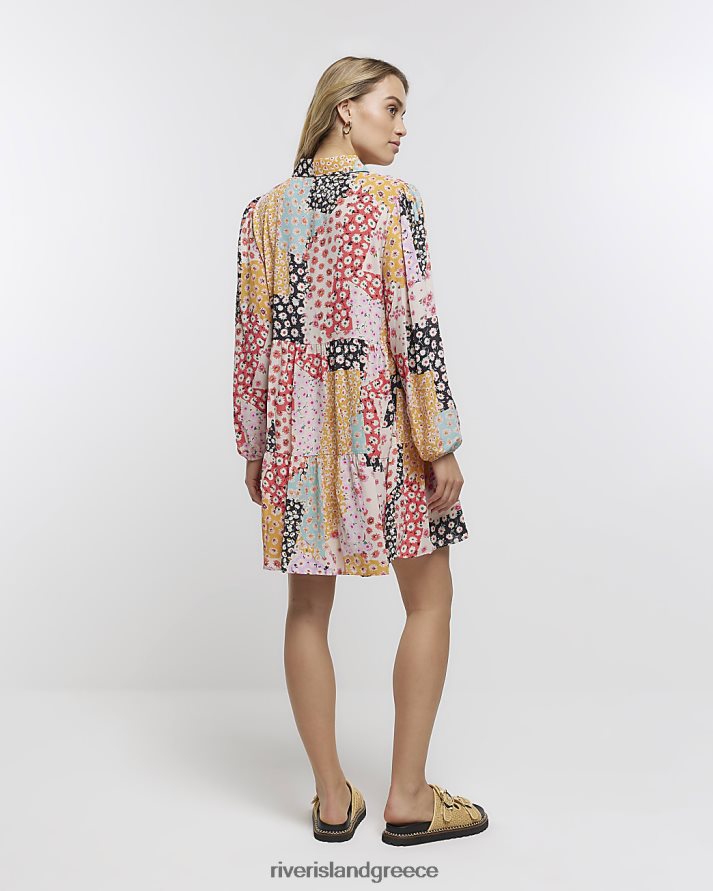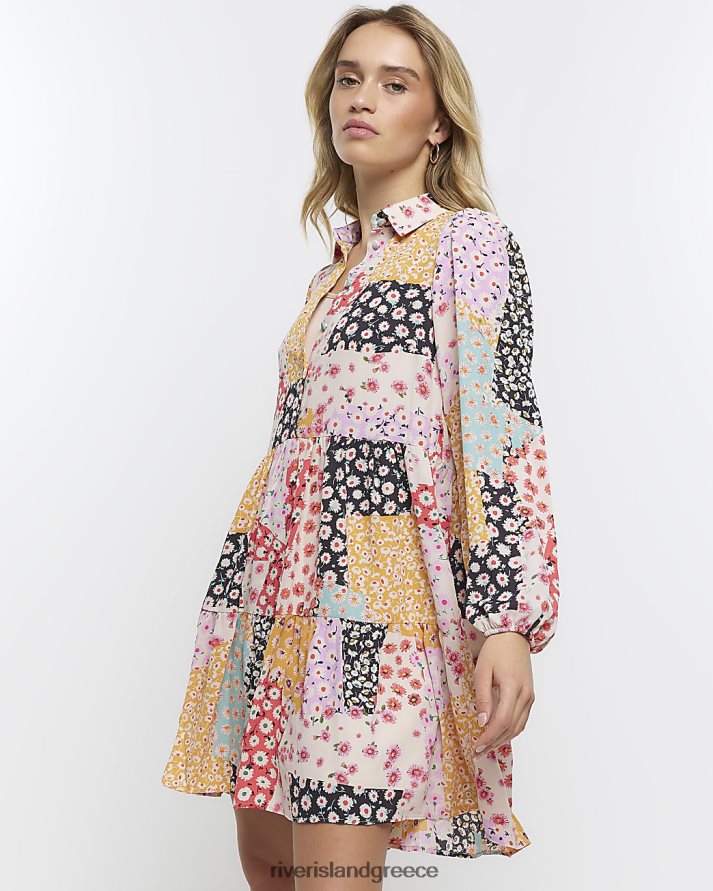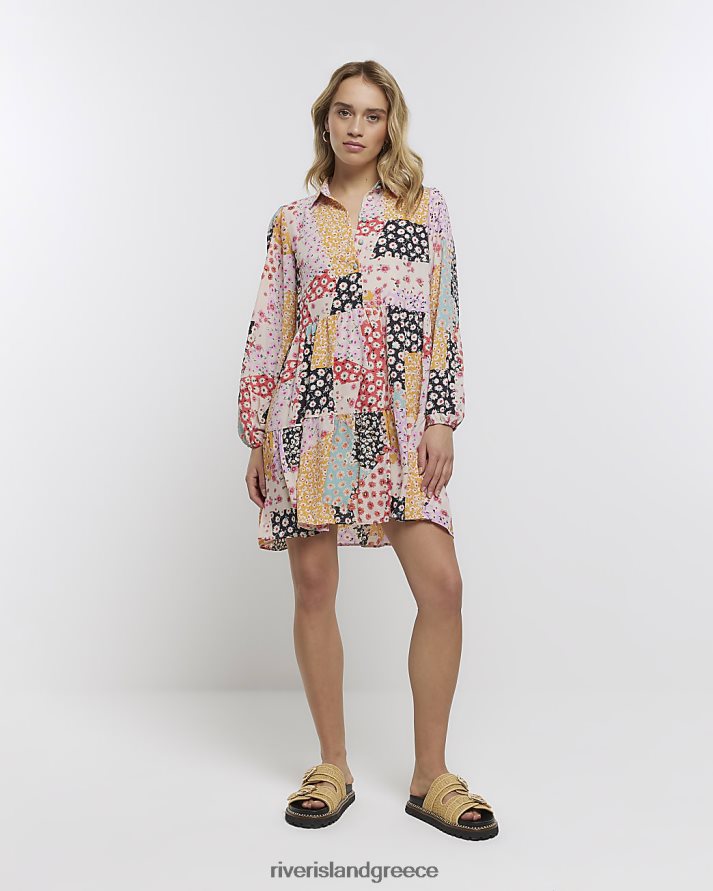 River Island ενδύματα κρέμα γυναίκες μακρυμάνικο φλοράλ μίνι πουκάμισο φόρεμα B6N8X2160