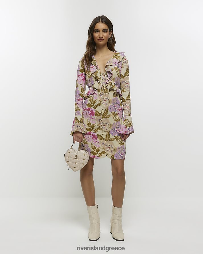 River Island ενδύματα κρέμα γυναίκες floral frill swing μίνι φόρεμα B6N8X1212