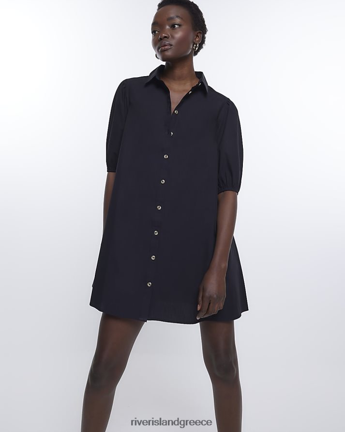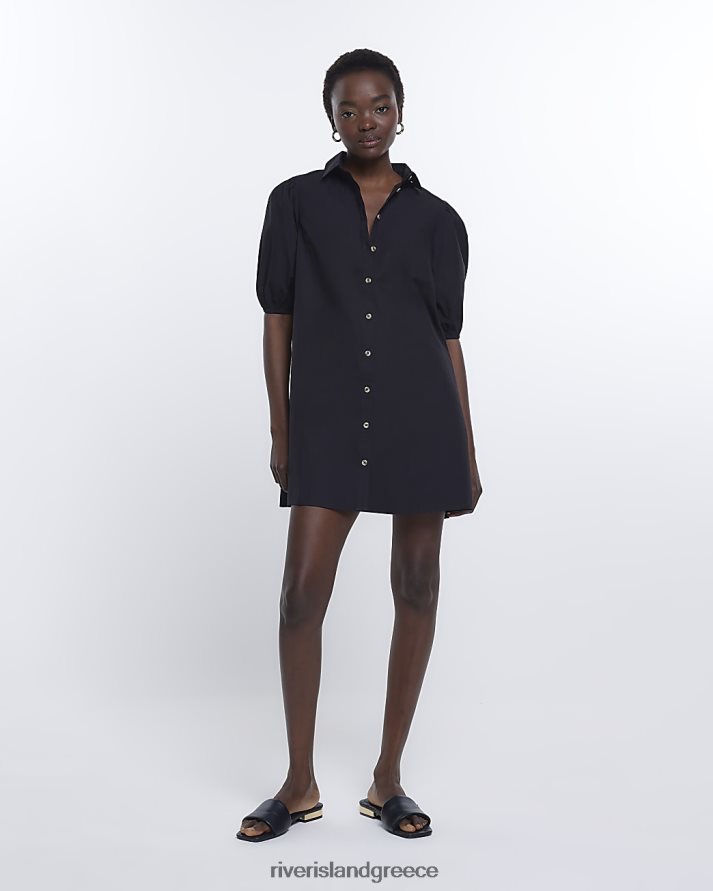 River Island ενδύματα μαύρος γυναίκες κοντομάνικο μίνι πουκάμισο φόρεμα B6N8X436