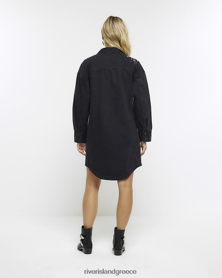 River Island ενδύματα μαύρος γυναίκες Μίνι πουκάμισο με τζιν διακοσμημένο B6N8X4322