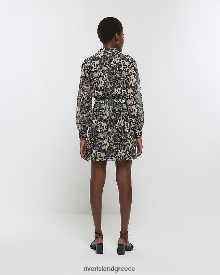 River Island ενδύματα μαύρος γυναίκες Μίνι πουκάμισο φόρεμα με ζωνάρι με animal print B6N8X4377
