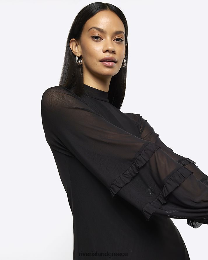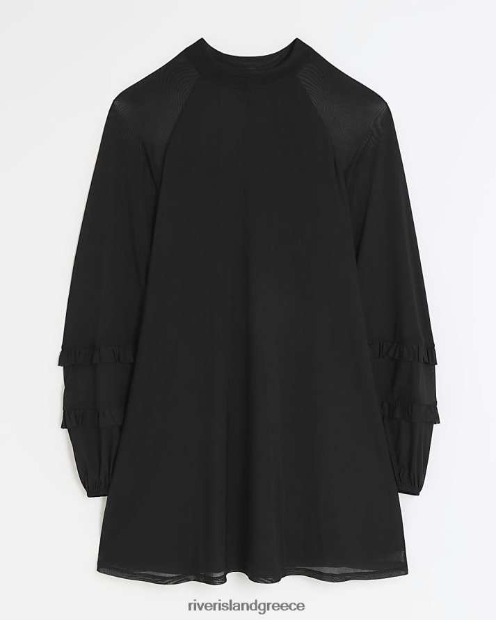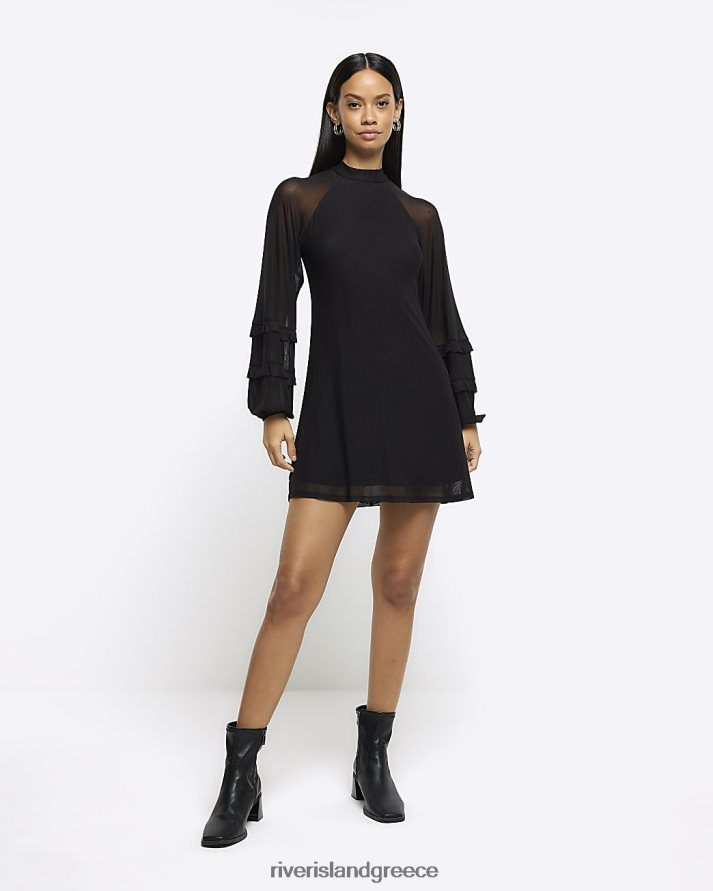 River Island ενδύματα μαύρος γυναίκες Μίνι φόρεμα από διχτυωτό μανίκι B6N8X4024