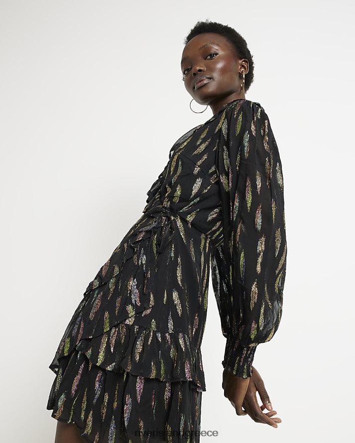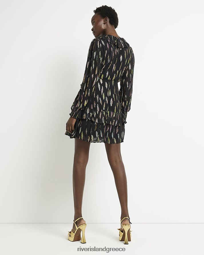 River Island ενδύματα μαύρος γυναίκες Μίνι φόρεμα με εμπριμέ ζακάρ B6N8X4898