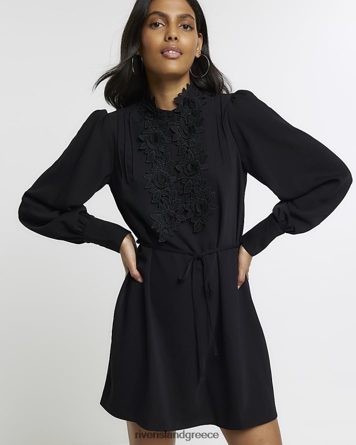 River Island ενδύματα μαύρος γυναίκες Μίνι φόρεμα με μακρυμάνικο λουλούδι B6N8X4462