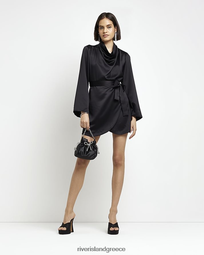 River Island ενδύματα μαύρος γυναίκες Μίνι φόρεμα με σατέν B6N8X1363