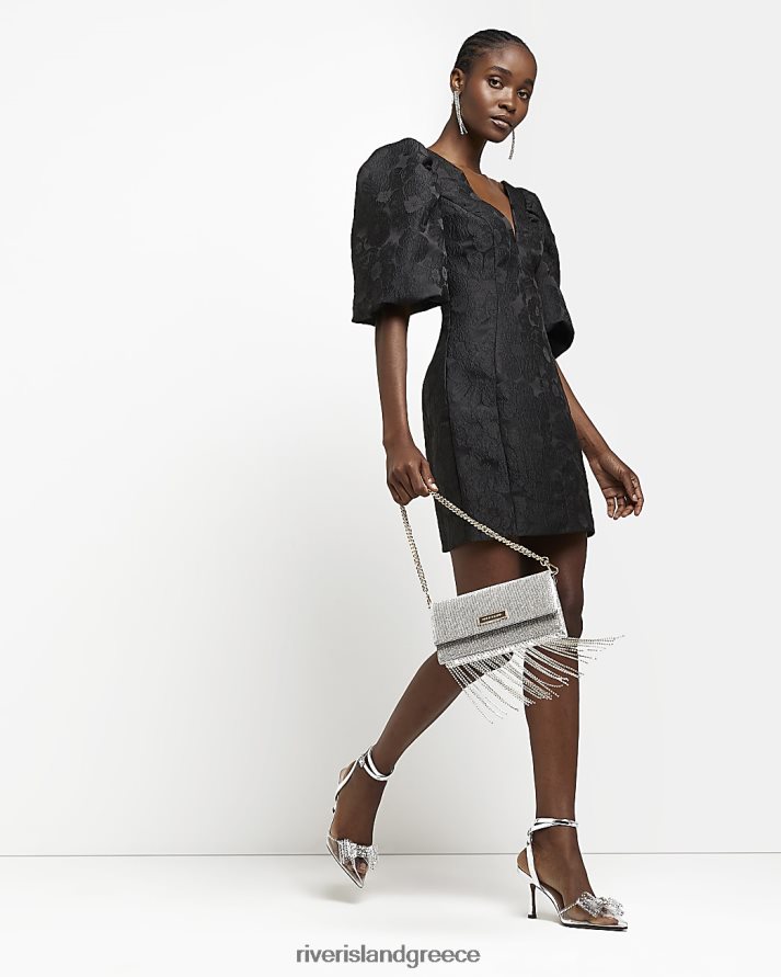 River Island ενδύματα μαύρος γυναίκες Μίνι φόρεμα με φουσκωτά μανίκια B6N8X2065