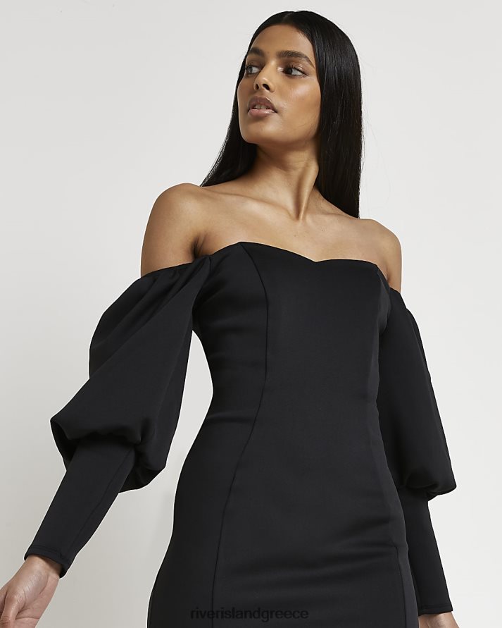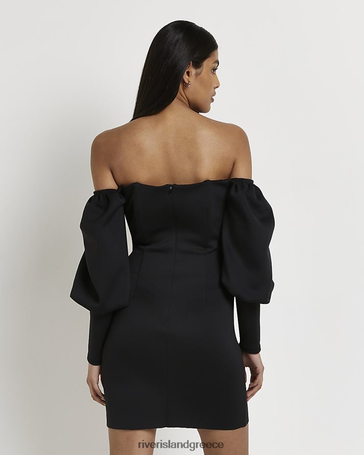 River Island ενδύματα μαύρος γυναίκες Μίνι φόρεμα bardot bodycon B6N8X1478