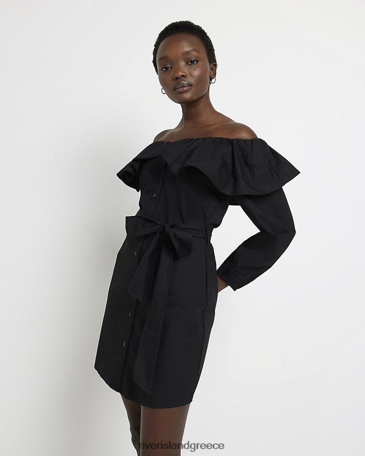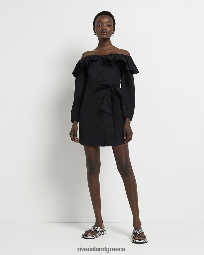 River Island ενδύματα μαύρος γυναίκες Μίνι φόρεμα bardot frill B6N8X1317