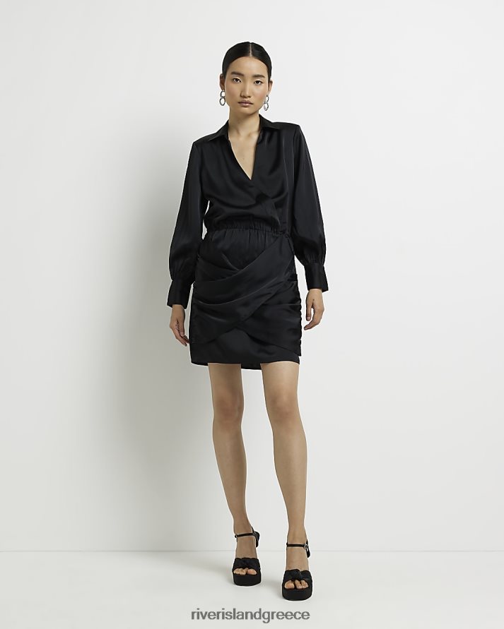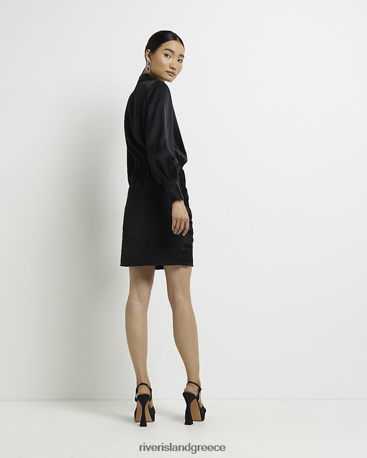 River Island ενδύματα μαύρος γυναίκες μακρυμάνικο σατέν μίνι φόρεμα πουκάμισο B6N8X1731