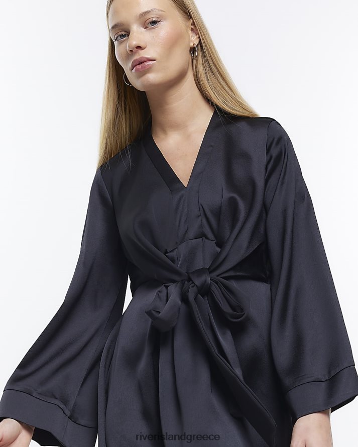 River Island ενδύματα μαύρος γυναίκες Μικρό σατέν μακρυμάνικο μίνι φόρεμα B6N8X5285
