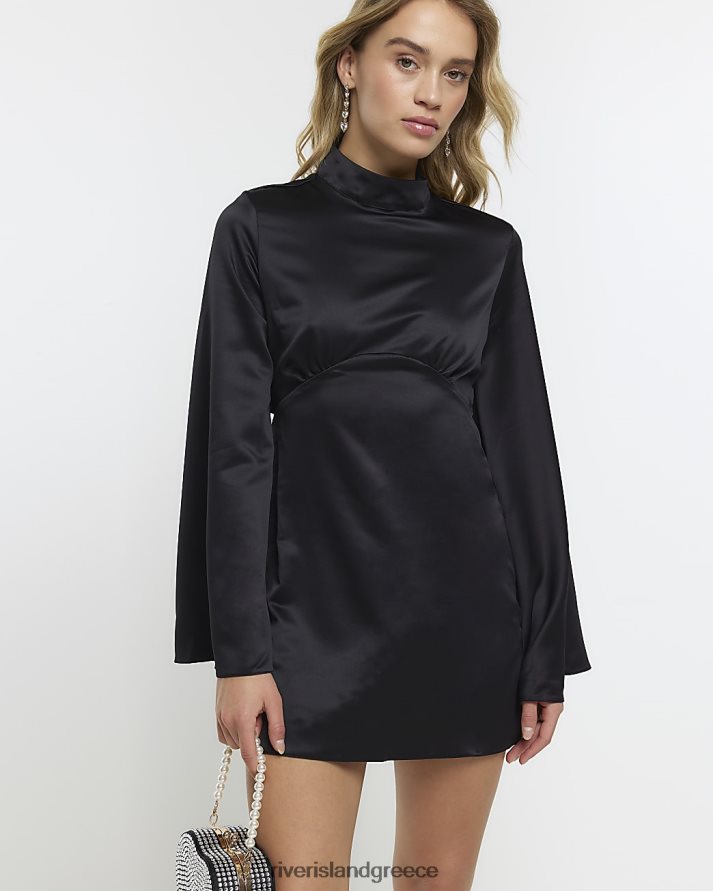 River Island ενδύματα μαύρος γυναίκες Σατέν Shift μίνι φόρεμα B6N8X530