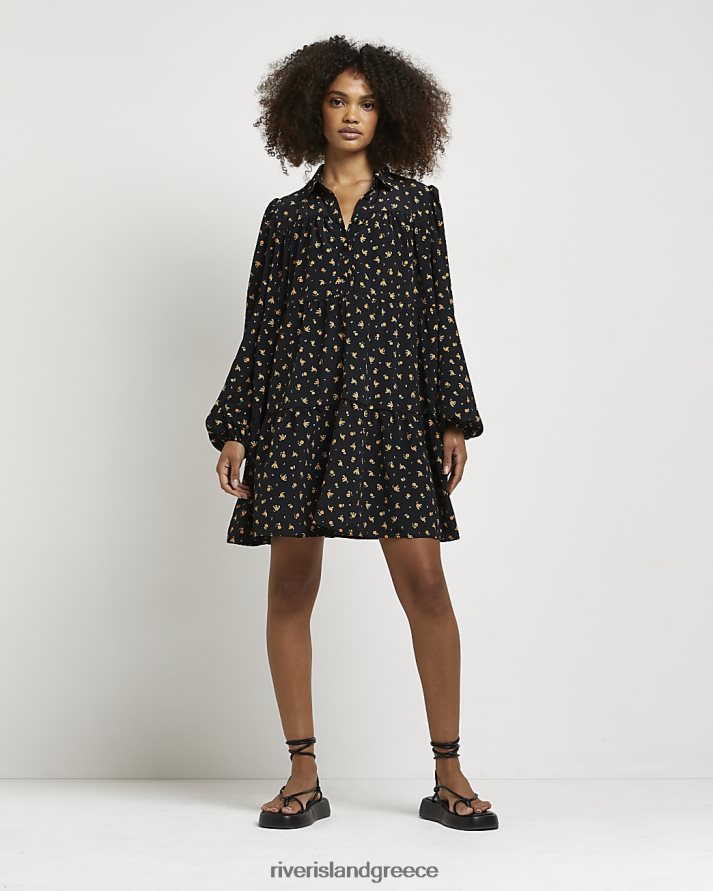 River Island ενδύματα μαύρος γυναίκες floral μίνι πουκάμισο φόρεμα B6N8X2193