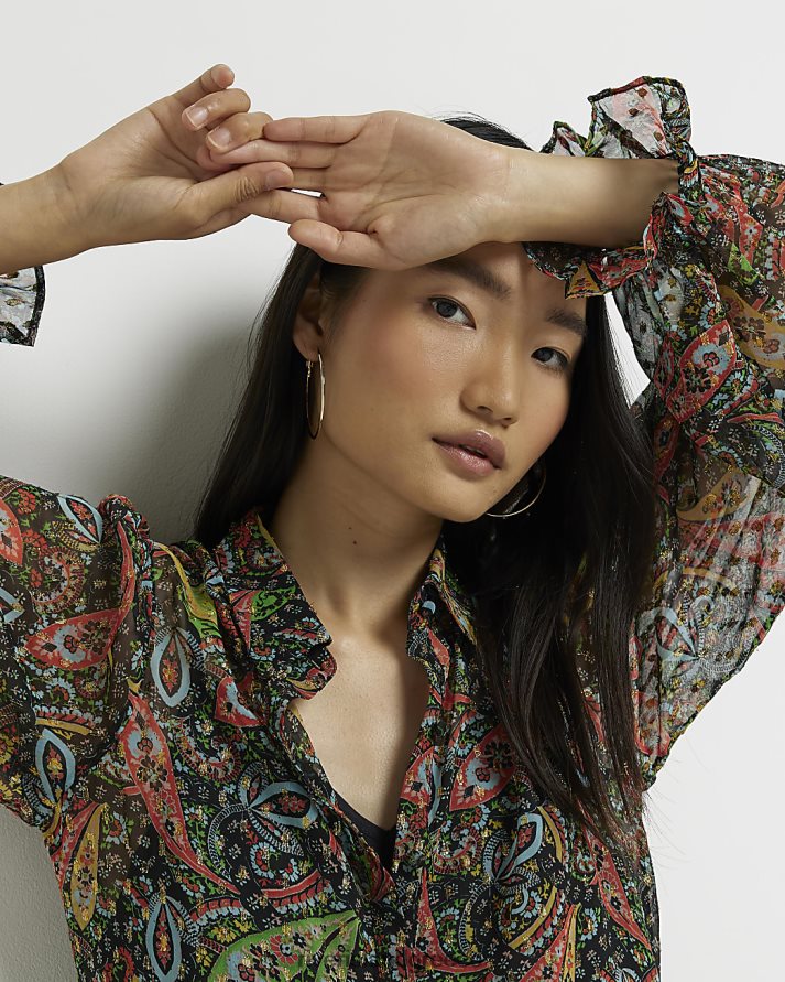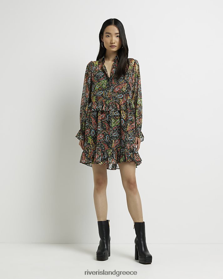 River Island ενδύματα μαύρος γυναίκες floral frill smock μίνι φόρεμα B6N8X1995