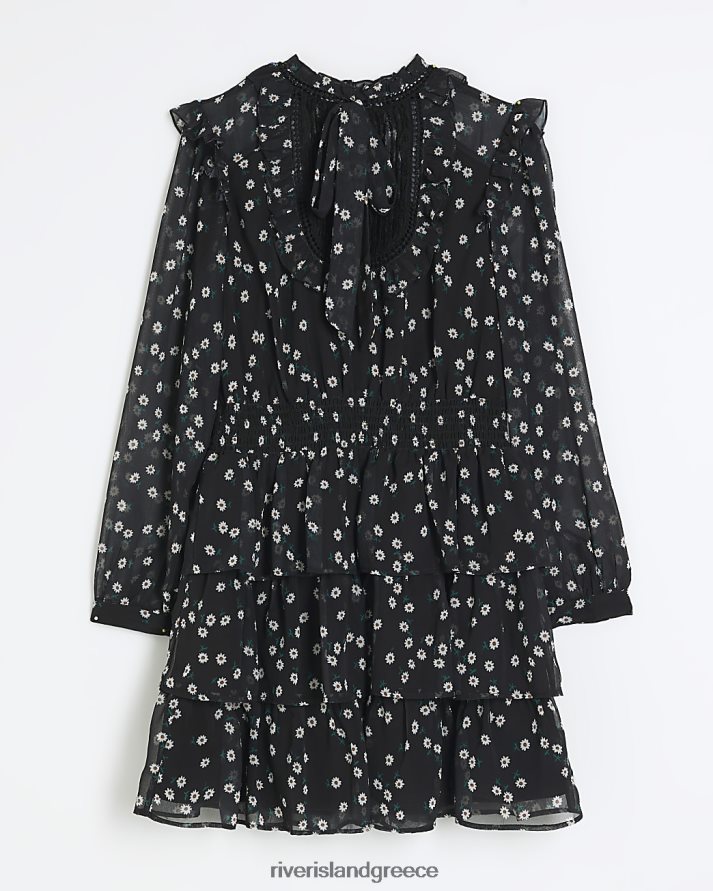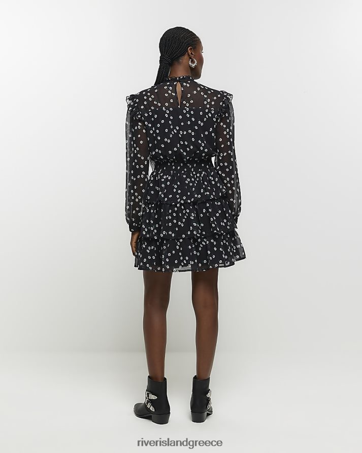 River Island ενδύματα μαύρος γυναίκες floral frill swing μίνι φόρεμα B6N8X4082