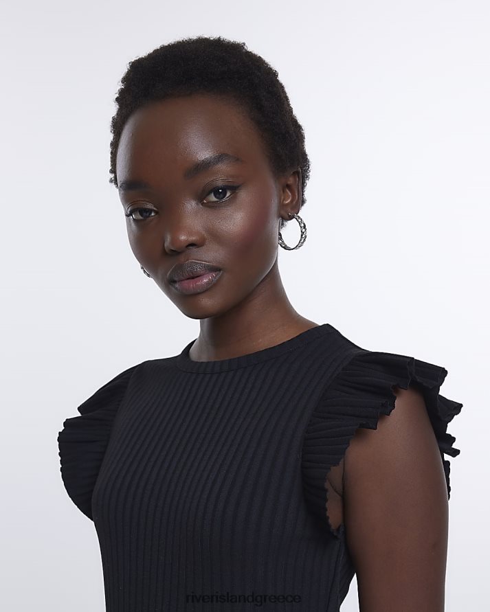 River Island ενδύματα μαύρος γυναίκες frill bodycon μίνι φόρεμα B6N8X1556
