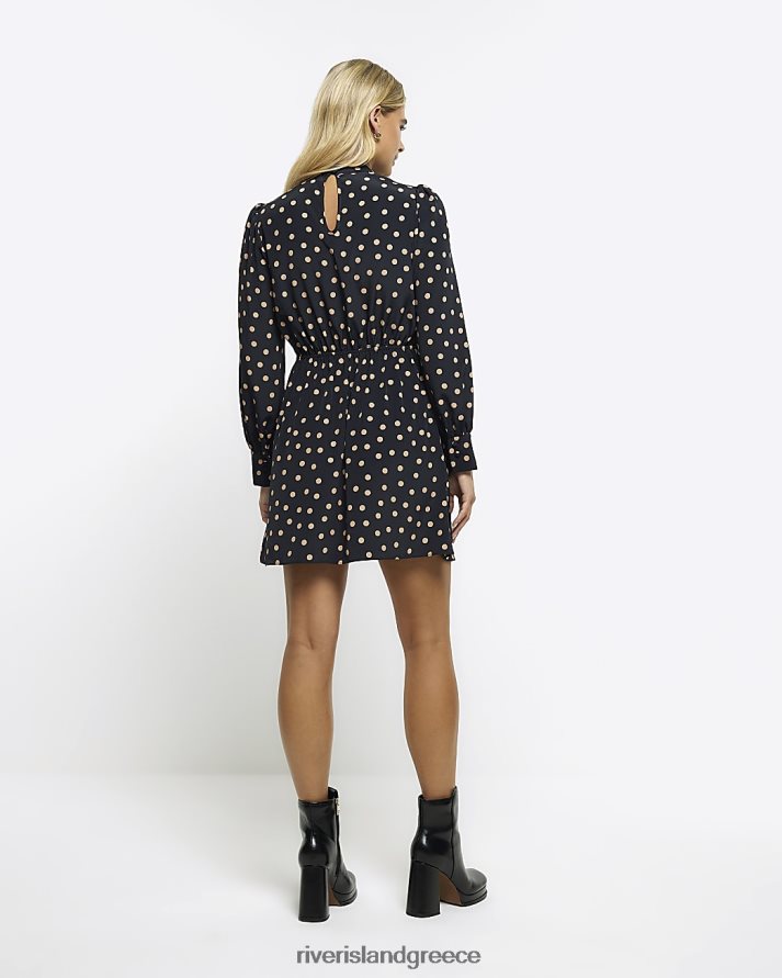 River Island ενδύματα μαύρος γυναίκες spot μακρυμάνικο shift μίνι φόρεμα B6N8X1155
